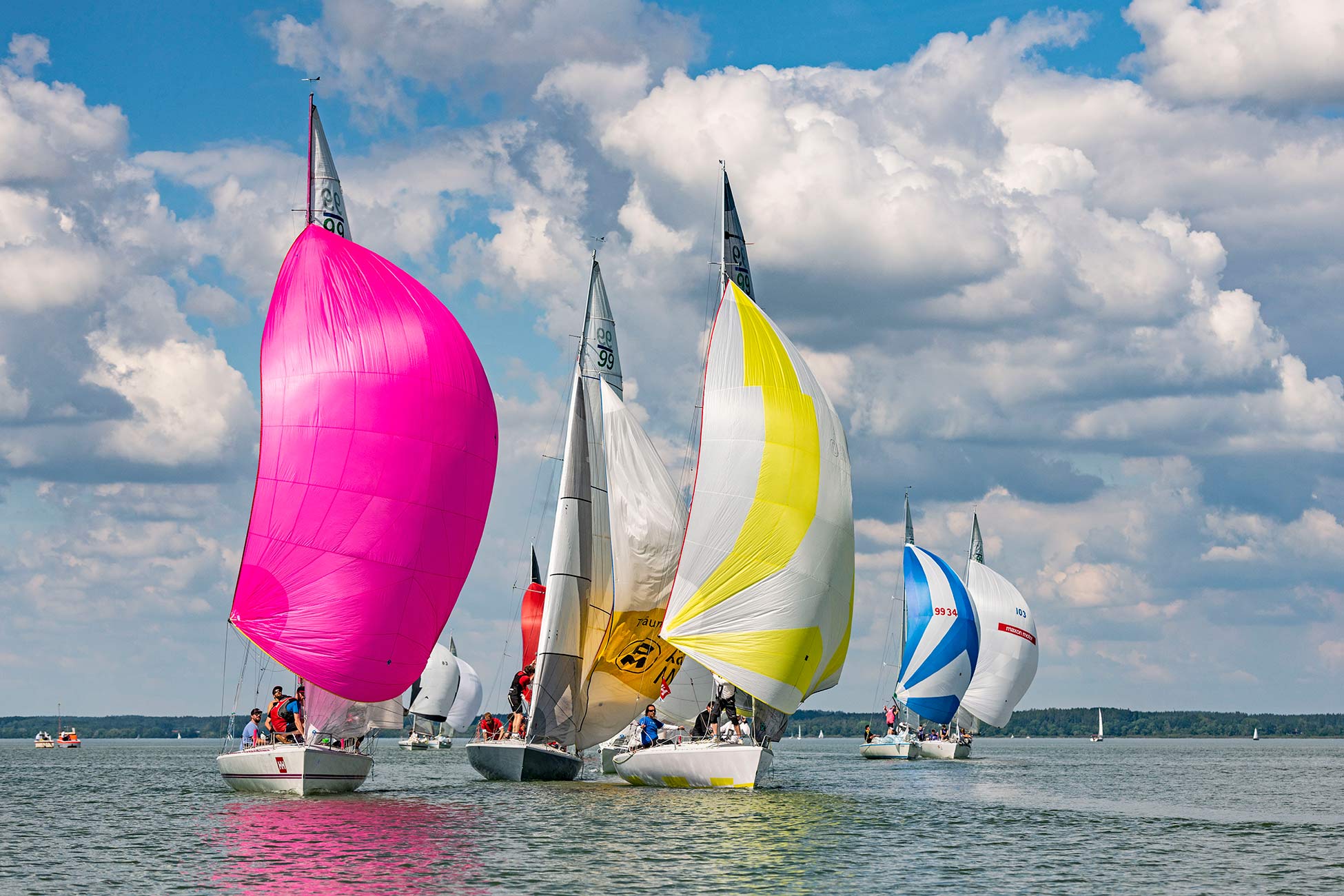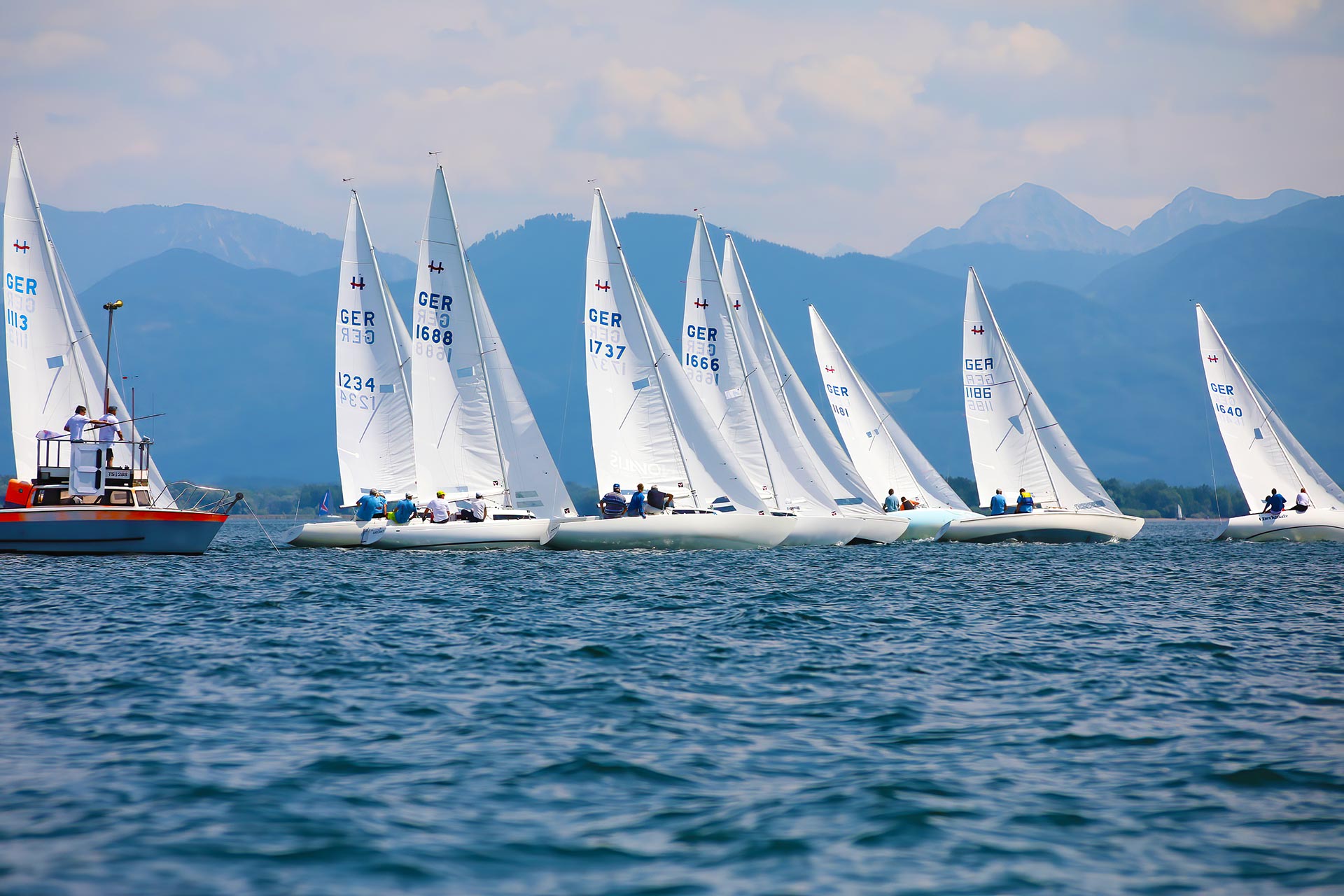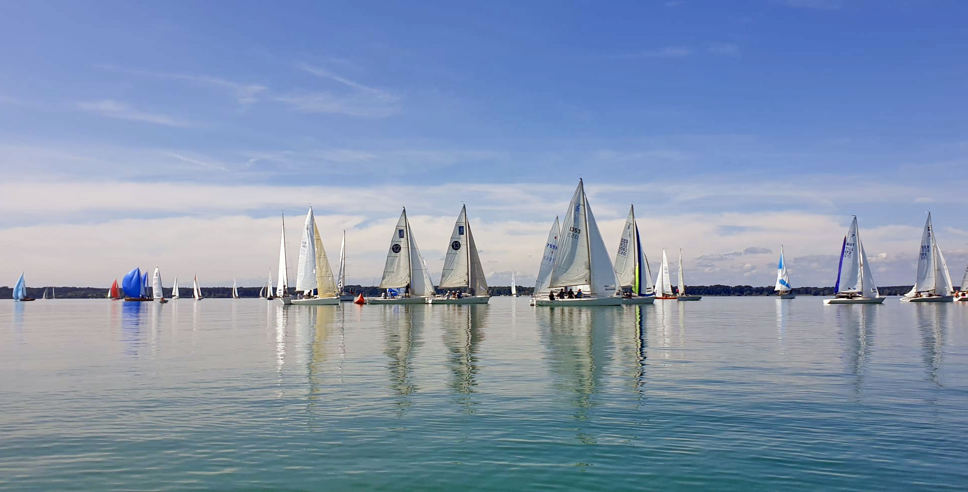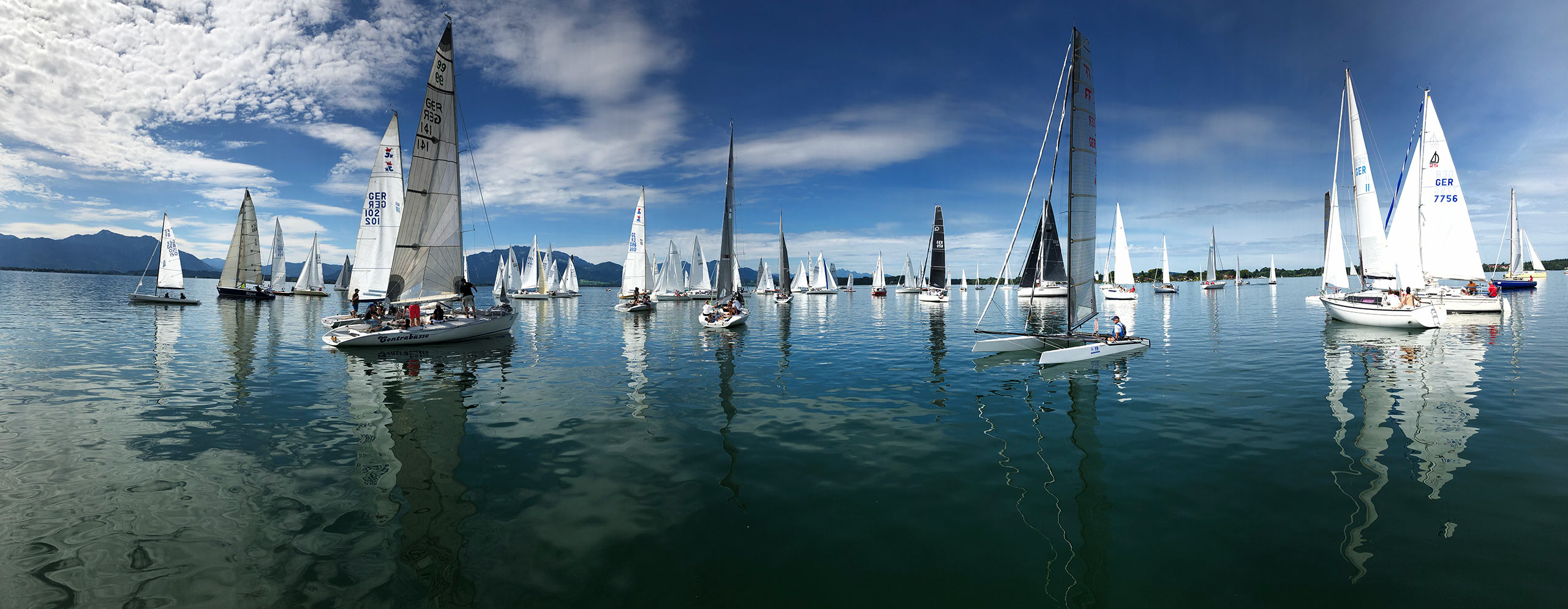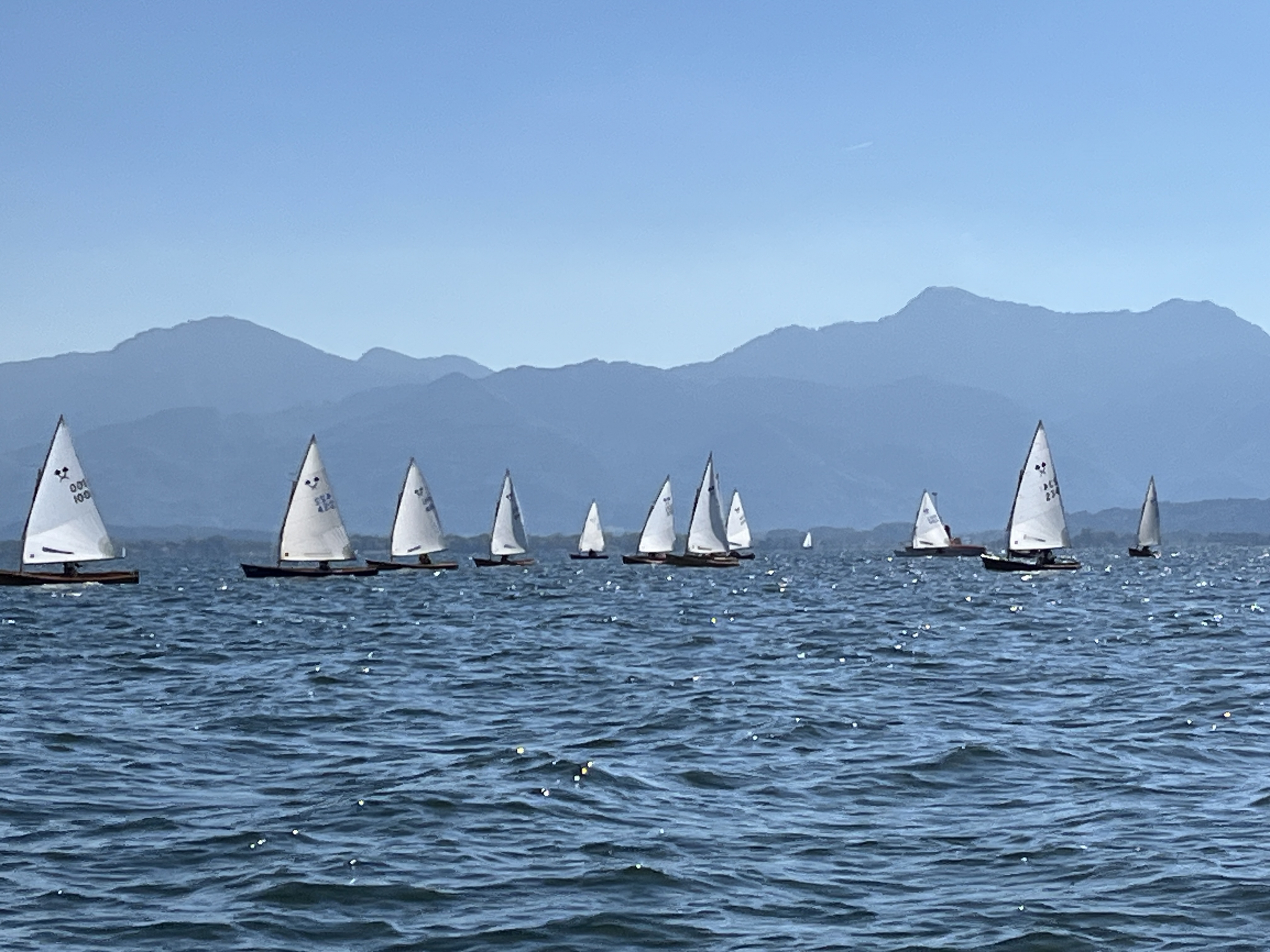 Wie ein Spiegel lag der Chiemsee vor dem Start der Wettfahrt. Erst nach fast zwei Stunden Wartezeit konnte Wettfahrtleiter Hannes Niggl das 92 Boote starke Feld auf den Kurs schicken.