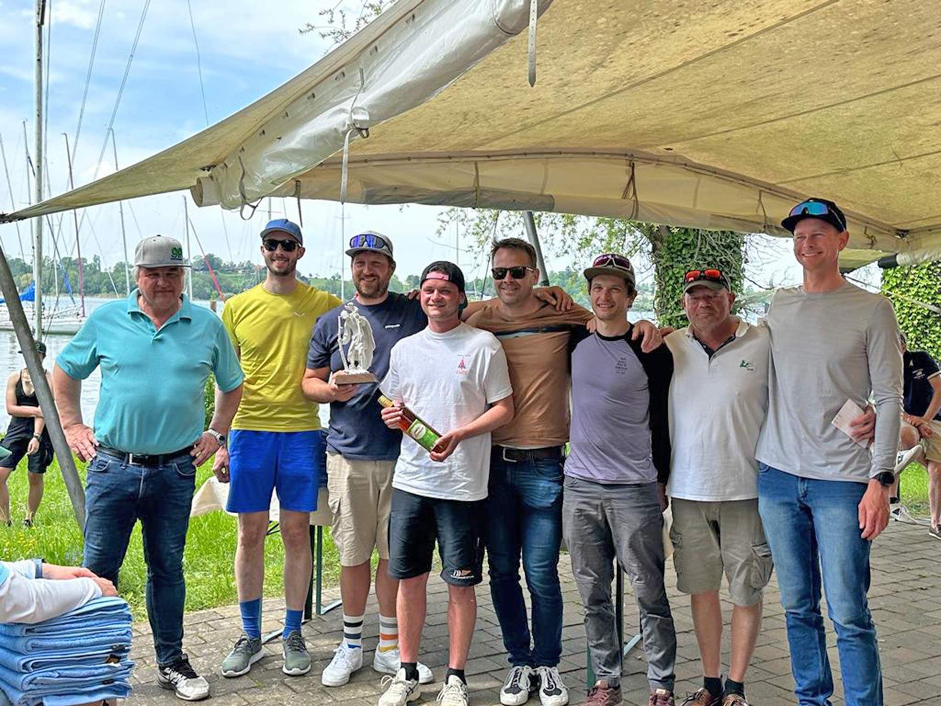 Die Preisverleihung durch Charly Zipfer war wie immer ein beschwingter Abschluss des Regattatages, zur Erheiterung trug bei manchen auch zusätzlich der Klosterlikör bei, den jeder Skipper erhalten hat. Angeblich soll eine Flasche entwendet worden sein; ich vermute mal, dass das nur Rasmus gewesen sein kann.