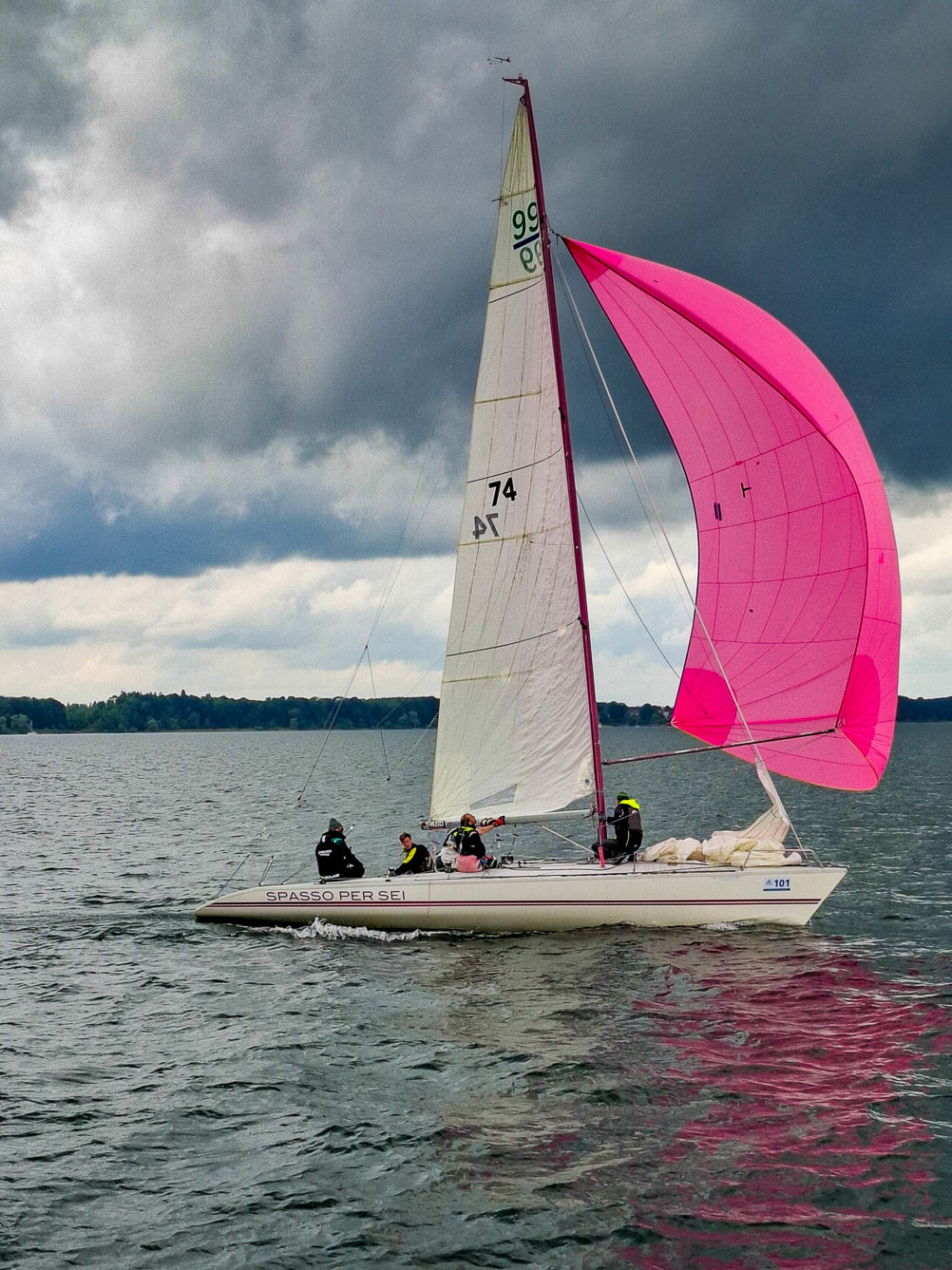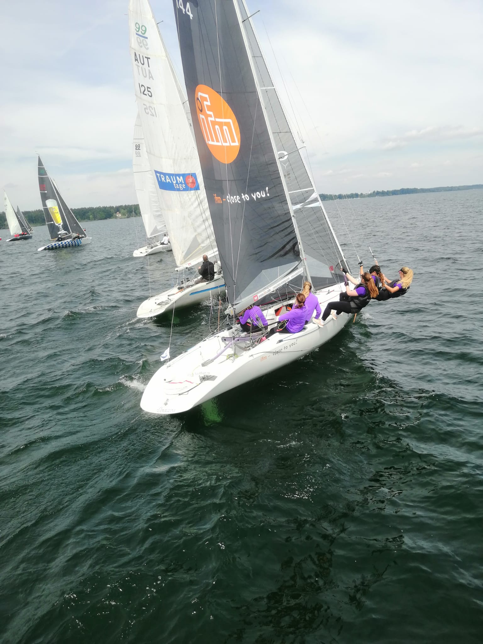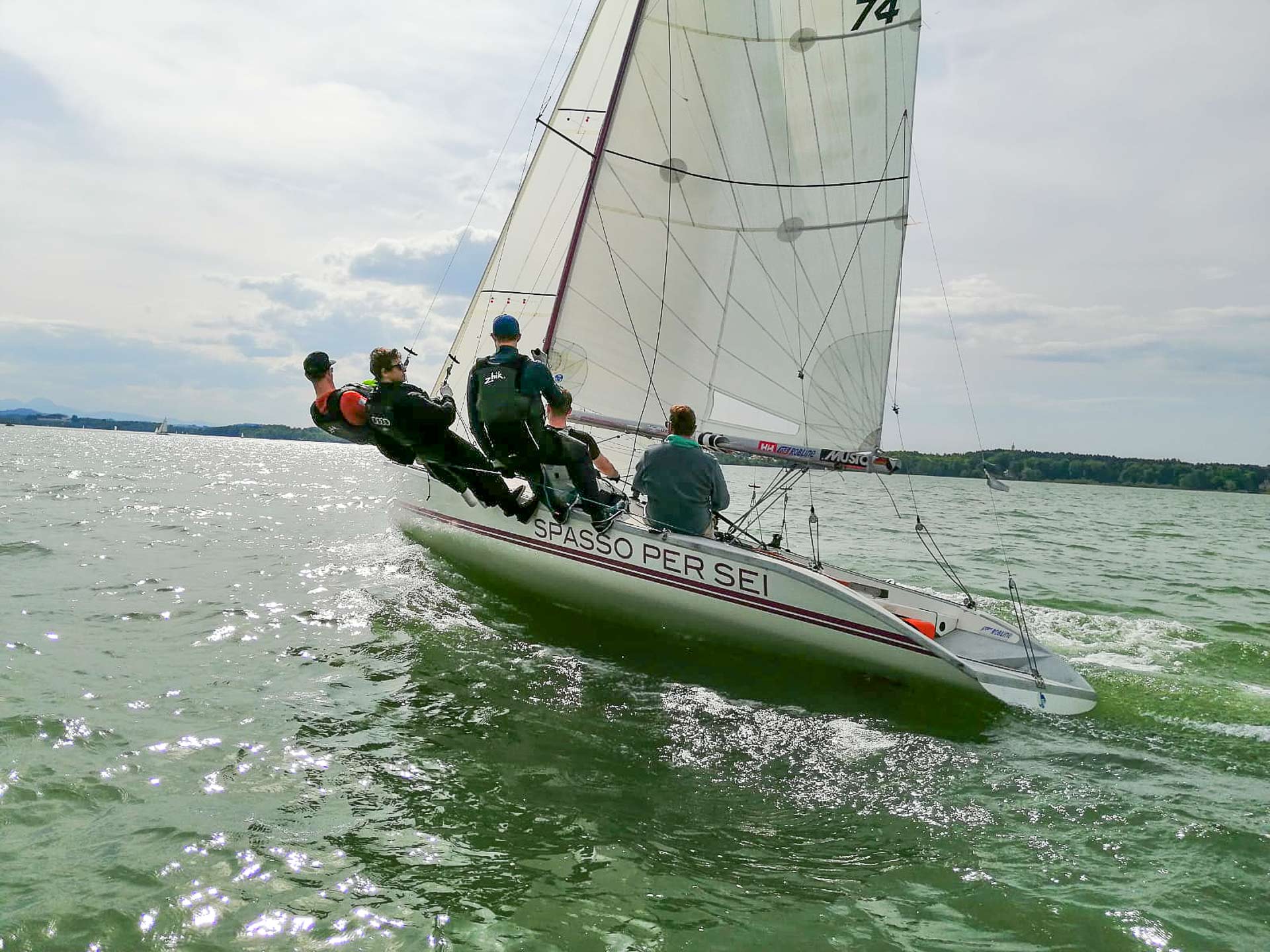 Die Regattasaison auf der Fraueninsel startete am vergangenen verlängerten Wochenende mit einer Regatta der Klasse Asso 99. Die Asso 99 ist ein Boot, das mit 6 Mann Besatzung gesegelt wird und seinen Schwerpunkt früher am Gardasee hatte, auch dort gebaut wurde und bekannt ist für Mannschaftssport und hohes Geschwindigkeitspotential bei Wind. Gemeldet hatten 11 Schiffe, darunter eine Damenmannschaft.