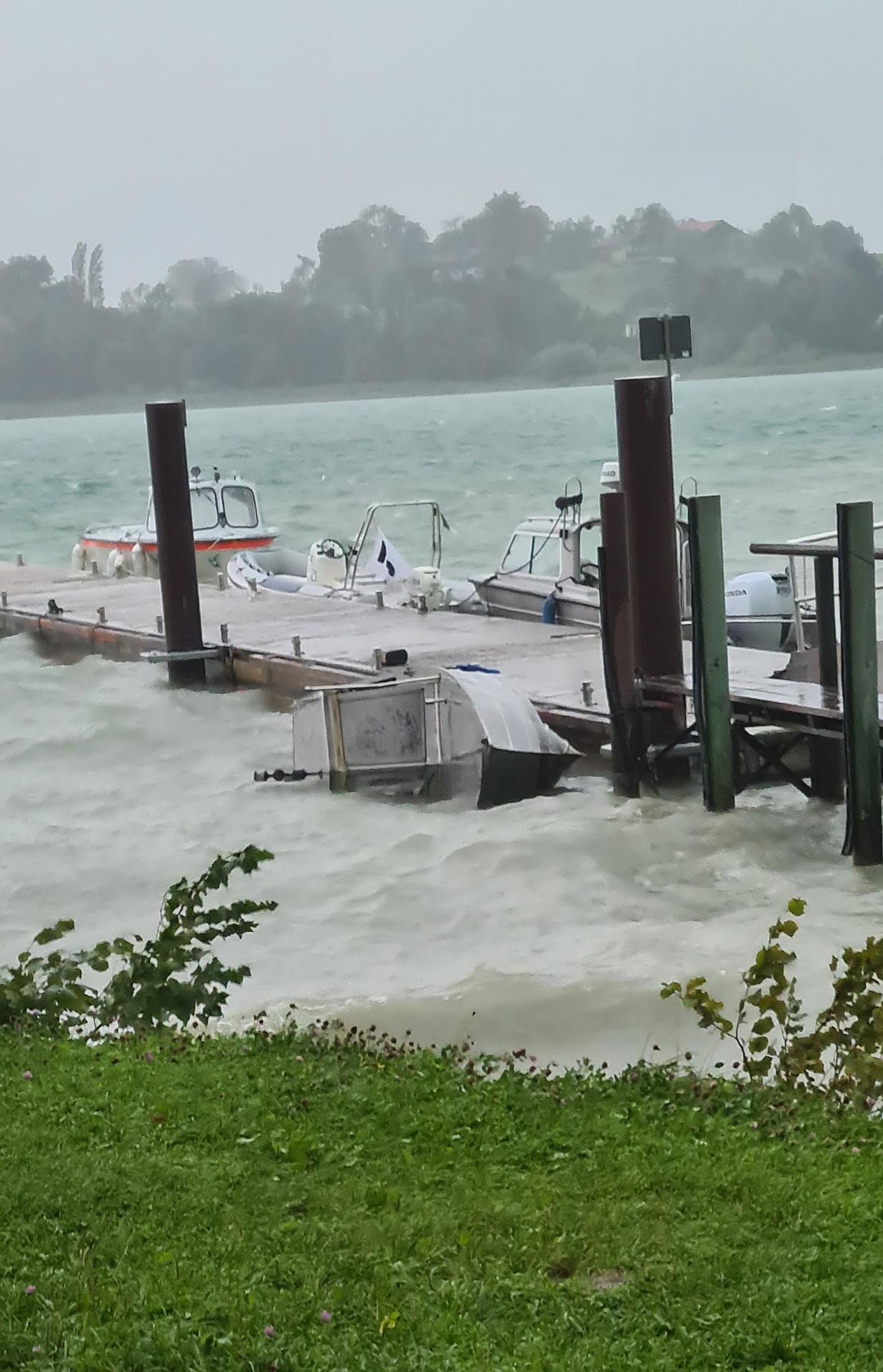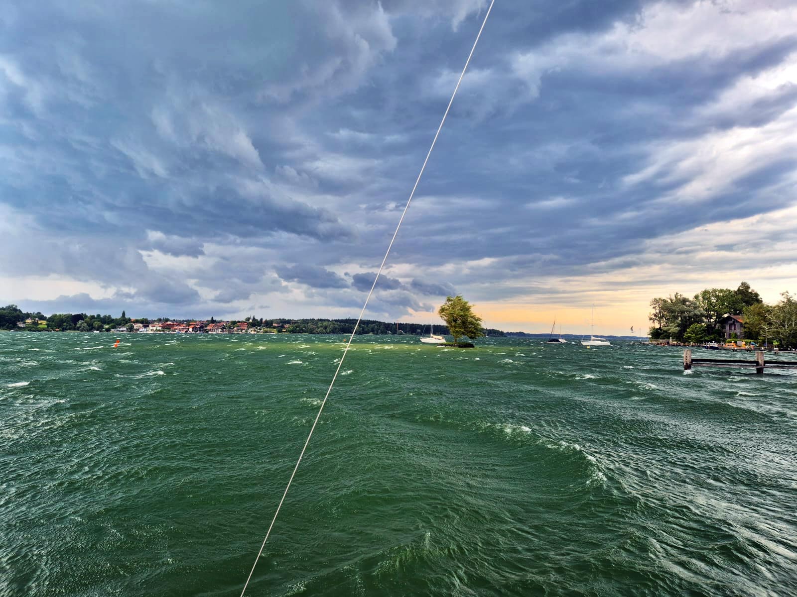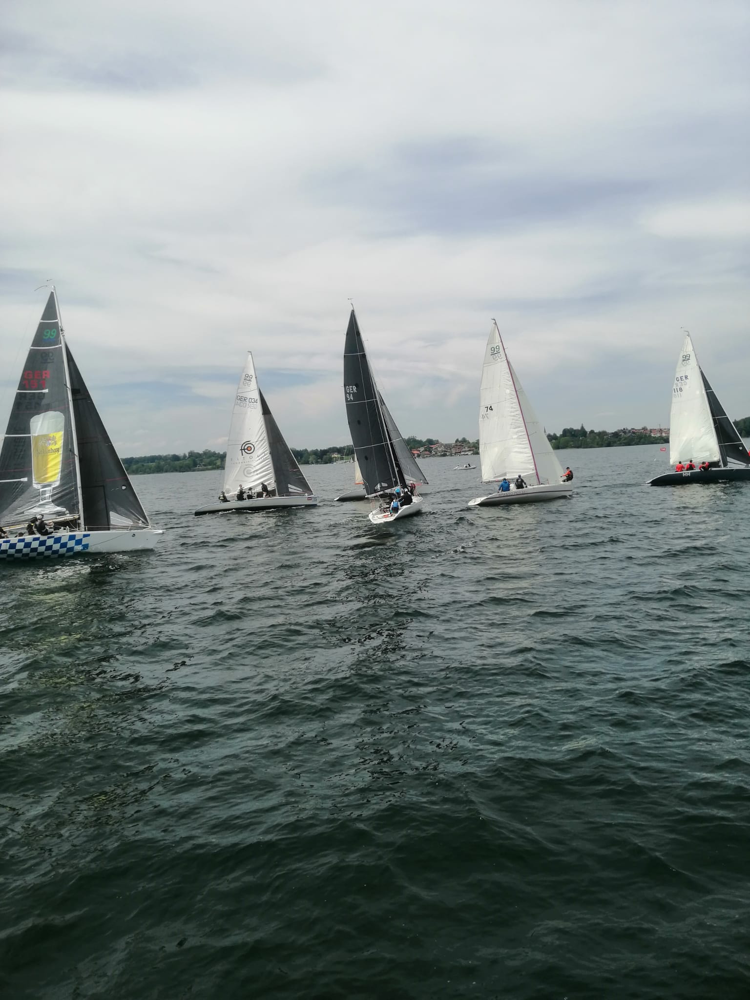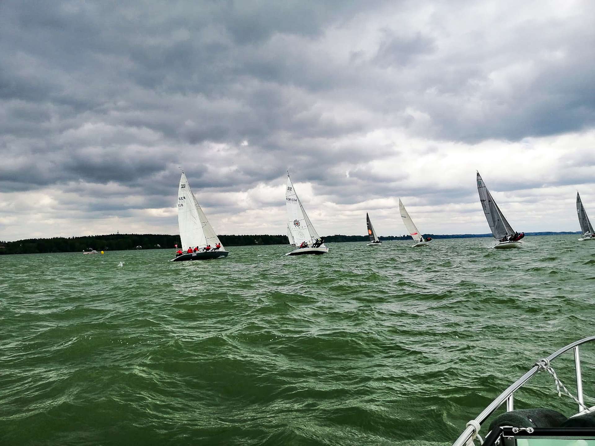 Es wurde dann versucht, noch eine weitere Wettfahrt zu segeln. Da jedoch die Starkwind- warnung eingeschaltet wurde und sowohl im Süden als auch im Norden des Sees dunkle Wolken aufzogen, entschloss sich die Wettfahrtleitung unter Hannes Niggl vom WVF den Startversuch abzubrechen und die Segler in die Häfen zu schicken.
