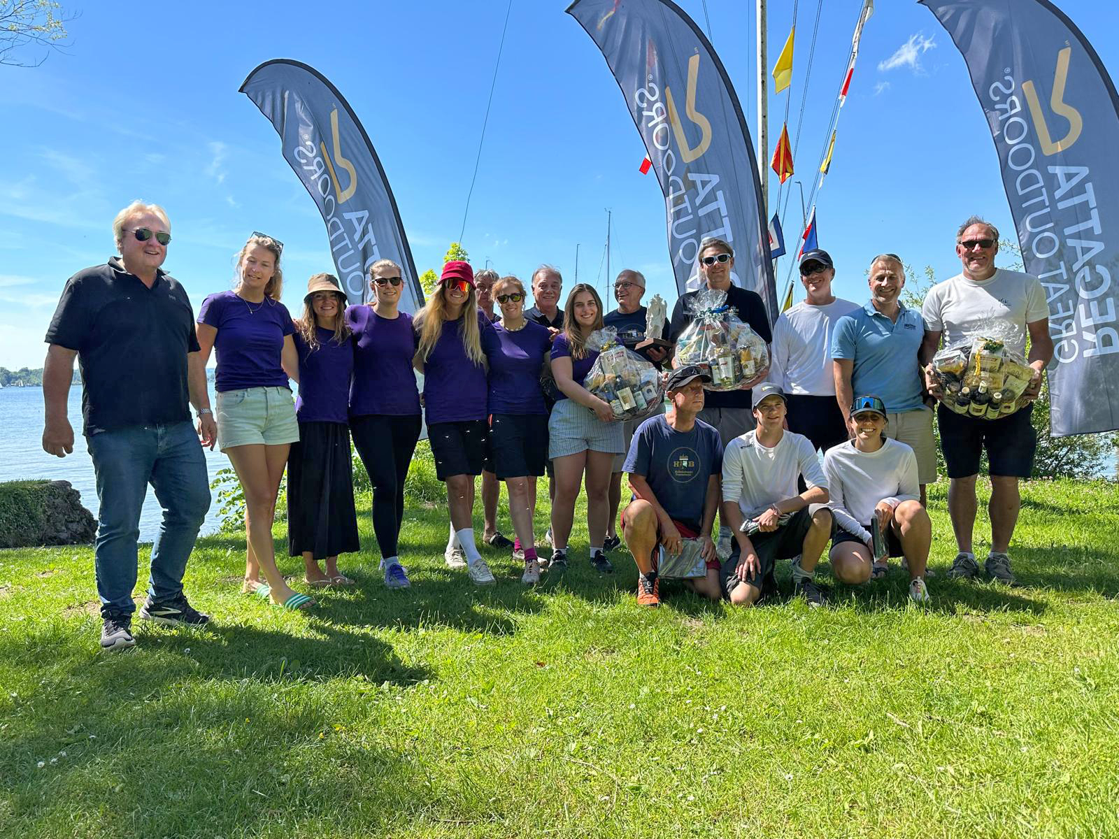 Mannschaft links in violett: Vizemeister wurden Annina Wagner, Karoline Göltzer, Meike Sprickmann, Fee Colella, Inga Böhmert, Svenja Ludwig und Maike Büring vom Potsdamer Yacht Club (2. Platz), Mitte: Sieger der Asso German Open 2025 Luitpold Prinz von Bayern mit seiner Mannschaft Peter Brög, Martin Endres, Felix Gruse, Moritz Ostermaier und Frank Weigelt vom BYC. Rechts: Drittplatzierte wurden Christoph Müller, Maximilian Grawe, Dr. Lorenz Huber, Maximilian Seidl und Simon Tripp vom Chiemsee-Yacht-Club.