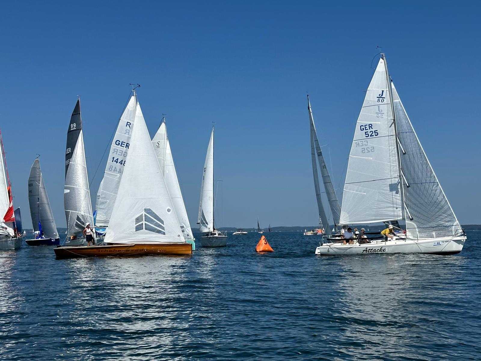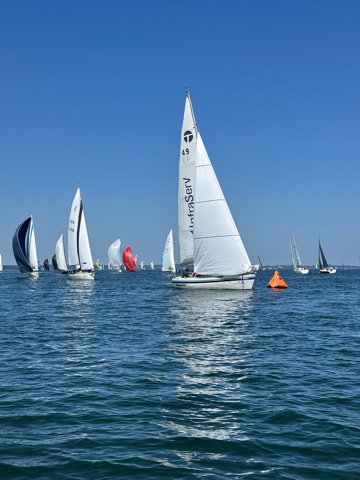 Da der Wind immer mehr nachließ, sah sich der Wettfahrtleiter gezwungen, an der Raumtonne das Ziel aufzubauen und die 2. Wettfahrt damit zu beenden.